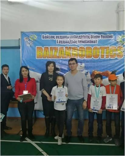 2020 жылдың 20 ақпан күні аудандық білім бөлімінің ұйымдастыруымен Намазбай Ақшабаев орта мектебінде I аудандық "Baizakrobotiks" чемпионаты өтті. Чемпионат 4 категория бойынша болды: Жобалар, үлкен саяхат, робо кросс, сумо. Ауданның робототехника кабинетімен жабдықталған 22 мектебінен 65-ке жуық оқушысы қатысты. Жобалар категориясы бойынша "Болашақтағы робокидс мектебі", "Мүгедектерге арналған пандус", "Автоматтандырылған көше жарығы" сияқты жобалар болса, "Үлкен саяхат" пен "робо кросс" категориясының бағдарламаларын оқушылар өздері құрастырған. Мектебімізден "ЖОБА" категориясы бойынша І дəрежелі дипломмен Аққос Айғаным, "BIG JOURNEY" категориясы бойынша ІІ дəрежелі дипломмен Тұрсынбек Нұрайдын марапатталды.