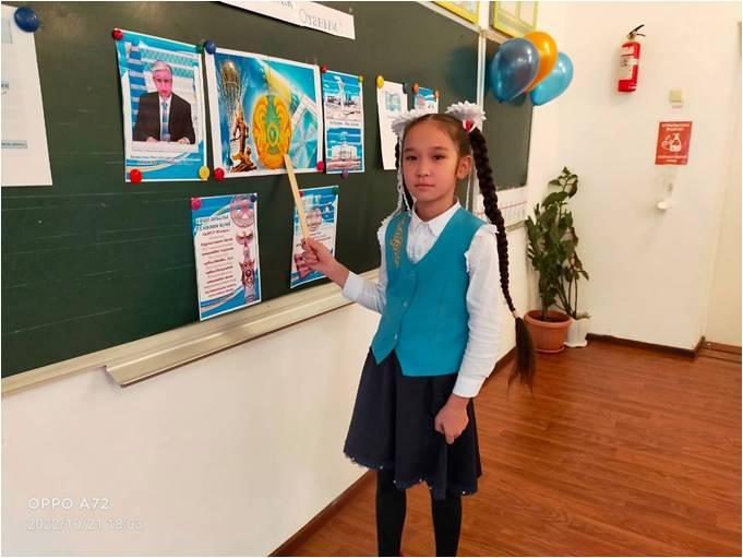 25 қазан - Республика күніне орай 3а сыныбында, сынып жетекшісі Кемелбекова Салтанат "Қазақстан -кең байтақ Отаным" тақырыбында сынып сағатын өткізді.