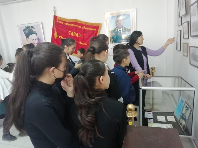 Ауғанстан жерінен кеңес әскерлерінің шығарылғанына 30 жыл толуына байланысты Тараз қаласы әкімдігінің жанында орналасқан көрме залына Намазбай Ақшабаев атындағы орта мектебінің