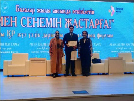 ҚР Президенті Қ.К.Тоқаевтың 2022 жылды «Балалар жылы» деп атауына орай оқушылардың оқу-білімге деген қызығушылығын арттыру және дарынды оқушылардың арасында байланыс орнату мақсатында өткізілген «Мен сенемін жастарға» атты республикалық форумға қатысқан 10 б сынып оқушысы Ермахан Ер-Әлі және 3 ә сынып оқушысы Марат Сабина І дәрежелі дипломмен марапатталды.