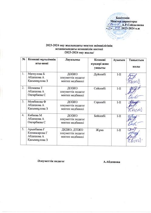 Мектеп әкімшілігінің асханадағы кезекшілік кестесі