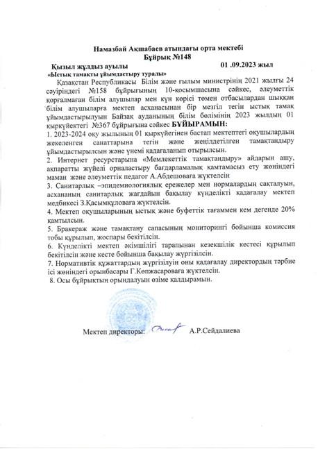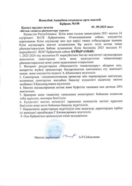Ыстық тамақ бойынша бұйрықтар » сш. им.Акшабаева
