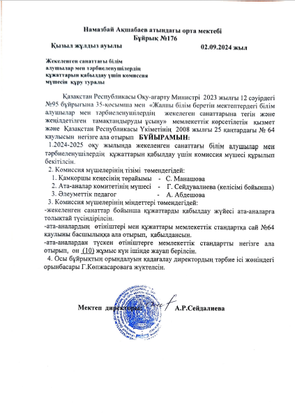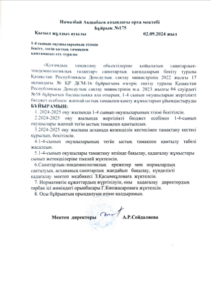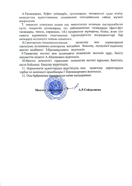 Ыстық тамақпен қамту жұмыстарын ұйымдастыру туралы БҰЙРЫҚ » сш. им.Акшабаева